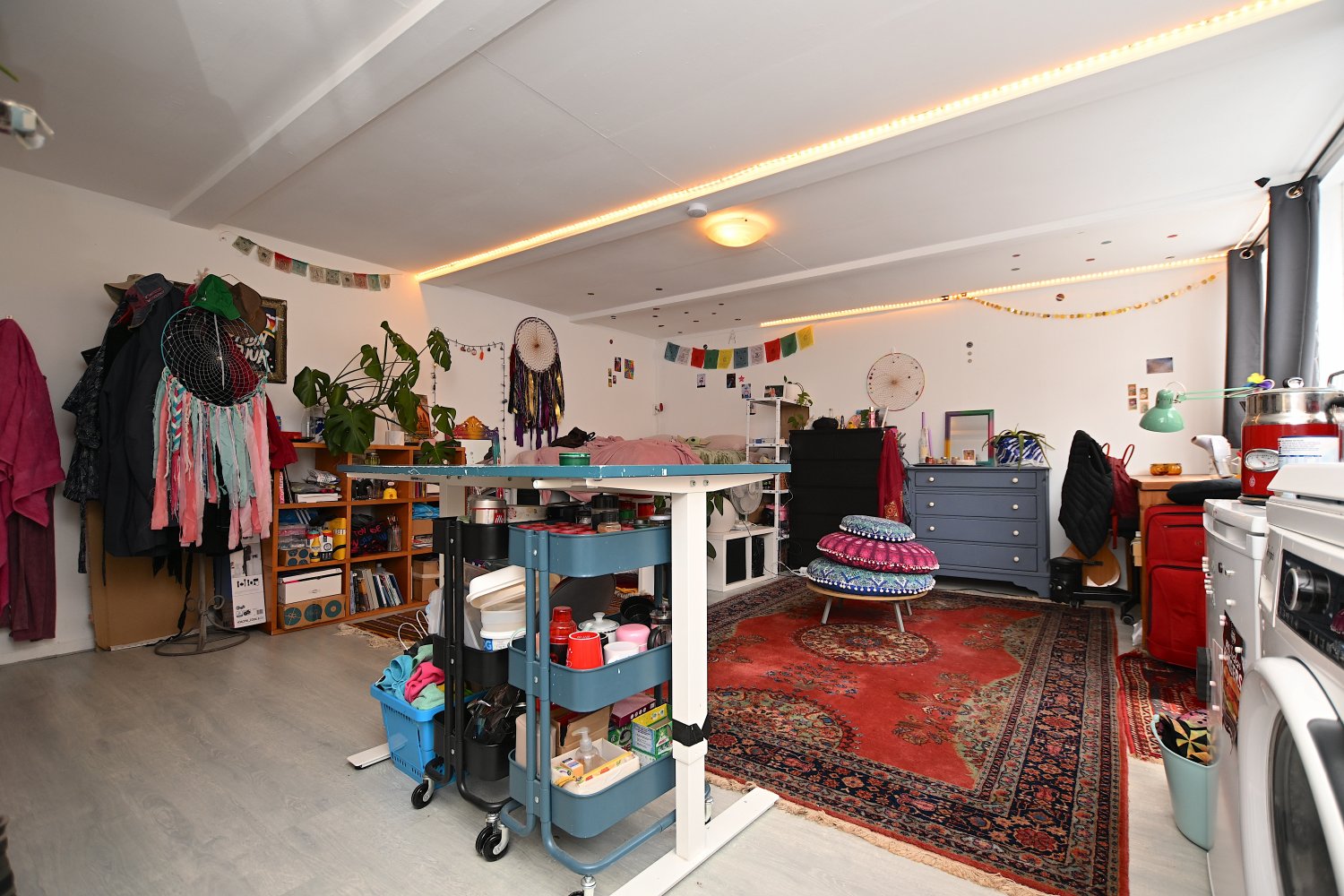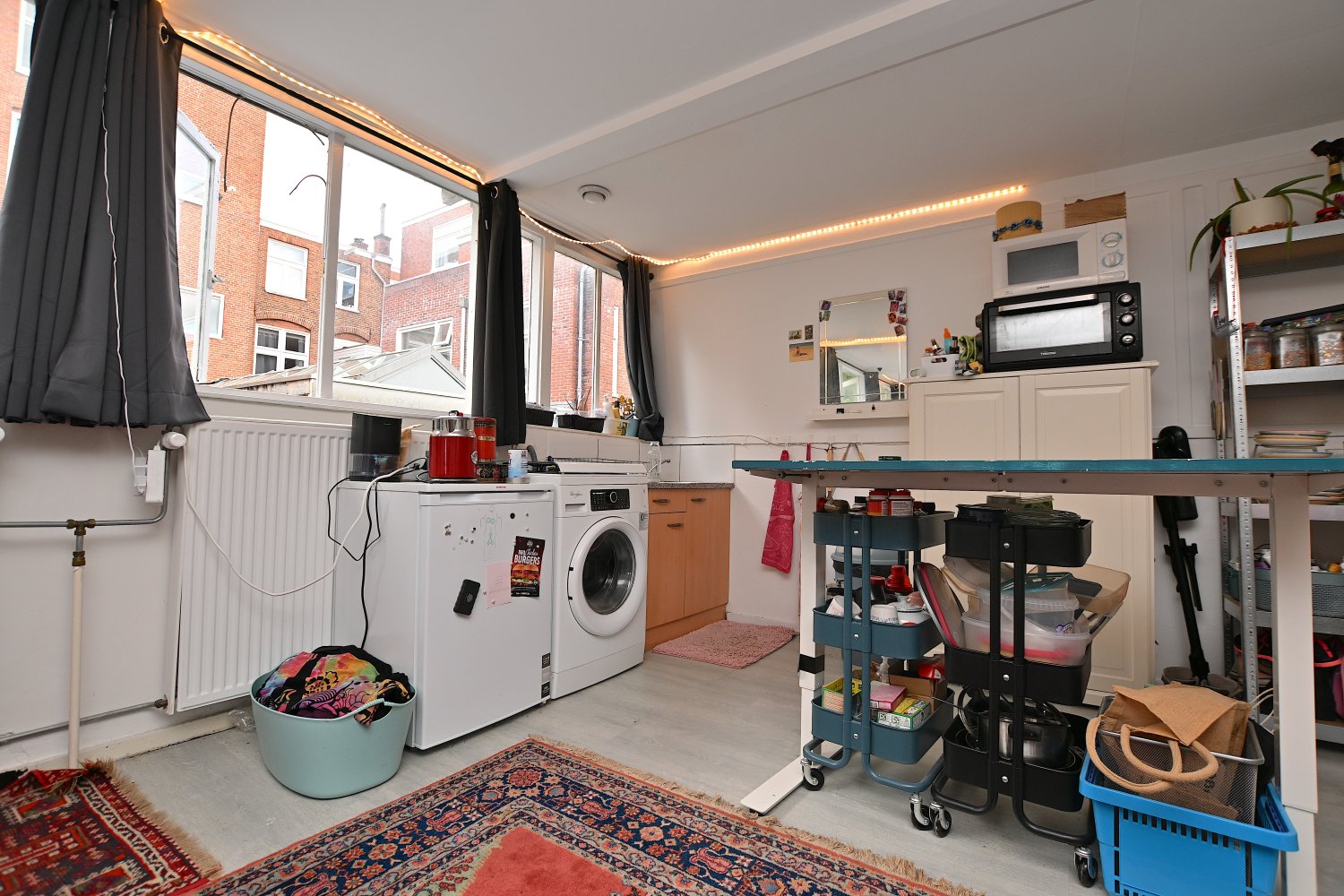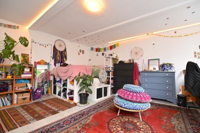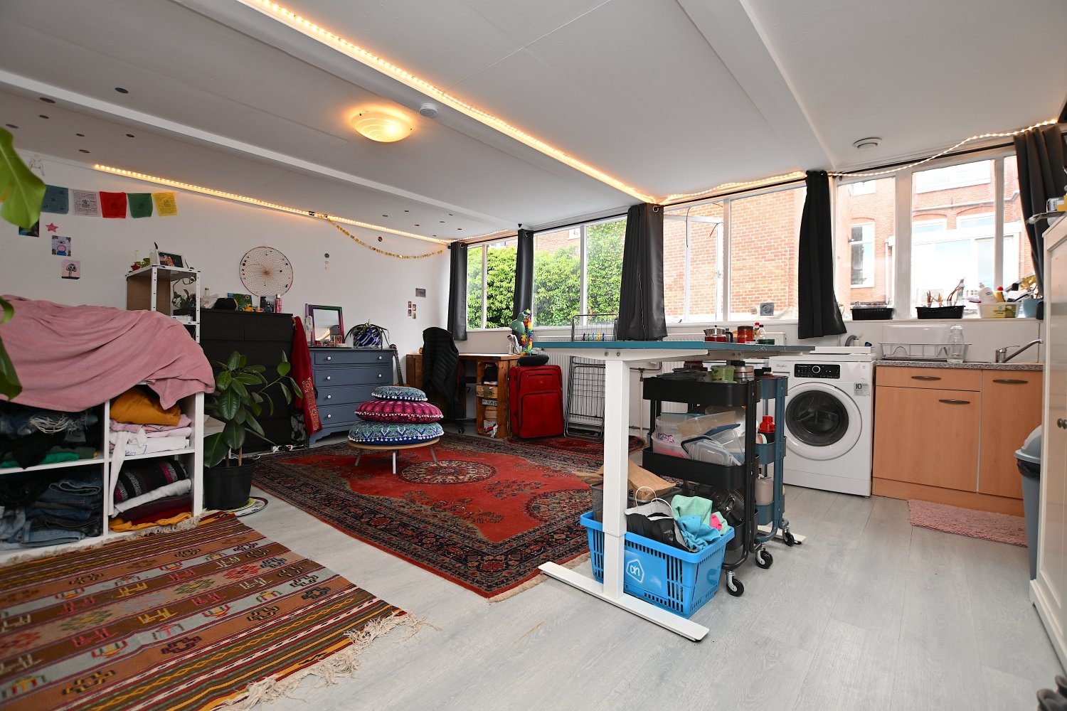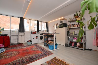 Deze ruime en lichte kamer beschikt over een eigen keuken, uitgerust met alle benodigde voorzieningen. Er is voldoende ruimte voor een tweepersoonsbed, een eettafel of thuiswerkplek en een kledingkast. De badkamer is voorzien van een douche, toilet en een wastafel met spiegel. Deze faciliteiten worden gedeeld met de overige bewoners.