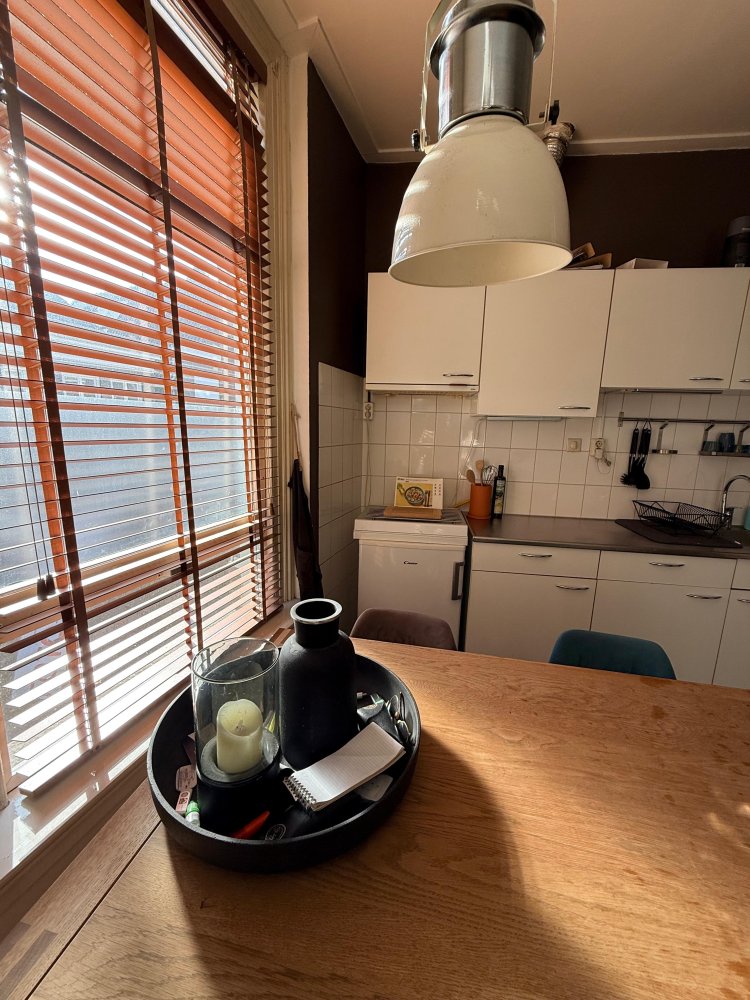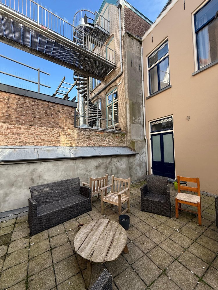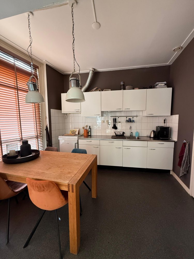 De woning heeft een ruime woonkamer met open keuken met uitzicht over de Oude Vismarkt.