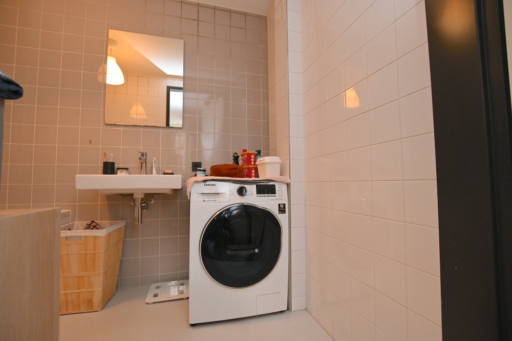 Het appartement bevindt zich in een modern pand op een rustige locatie, ondanks de centrale ligging.