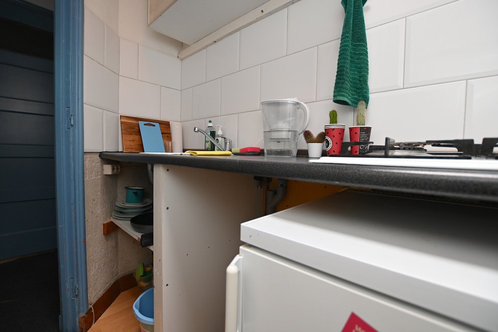 Via de begane grond ga je met de trap omhoog waar zich op de tweede etage de studio bevindt. De woonruimte beschikt over drie ruimtes. De woonkamer is ruim op gezet waar door er voldoende ruimte is voor een zit- en eet hoek evenals een werkplek. De separate keuken is voorzien van een inbouw gasfornuis en voldoende kastruimte voor al je keukengerei. Daarnaast beschikt de studio ook over een ruime slaapkamer met een inbouwkast en een wastafel. De badkamer en het balkon worden gedeeld met één persoon.