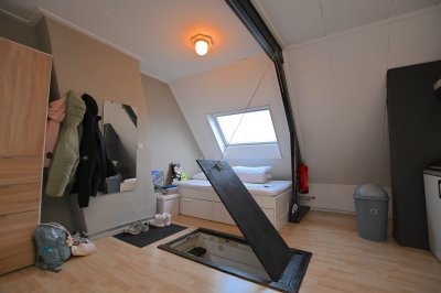 De kamer is gelegen op de derde etage aan de voor- en achterzijde van het pand.