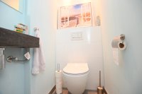 De kamer zelf is te bereiken via de hal, hier is ruimte voor een tweepersoonsbed en een kleidingkast. De moderne badkamer is voorzien van dubbele wastafel, spiegel en inloopdouche. Het toilet is gescheiden van de badkamer. Op de begane grond is tevens een berging aanwezig.