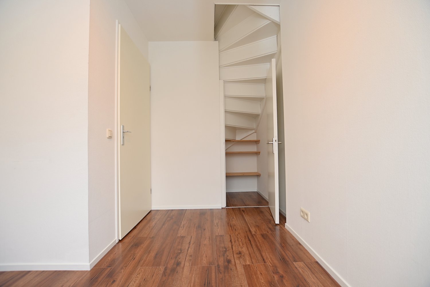 Aan de linker achterzijde van de eerste etage is een slaapkamer te vinden met voldoende lichtinval en een trappenkast, waar kleding in kan worden opgeslagen. Aan de voorzijde is nog een slaapkamer te vinden, ook deze slaapkamer heeft veel lichtinval.
