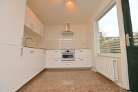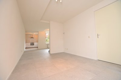 Bij binnenkomst via de voordeur is er een deur naar de woon/eetkamer. De begane grond is een open ruimte die ook gesloten ingericht zou kunnen worden door de tussenmuur. Er komt veel daglicht binnen in de woning door de raampartijen aan de voor- en achterkant van de woning. Aan de achterzijde van de woning is de nieuwe keuken te vinden. De keuken is voorzien van een oven, vaatwasser, wasbak, kraan, vrieskast en een grote koelkast. Verder is er voldoende opslagruimte in de keuken aanwezig.