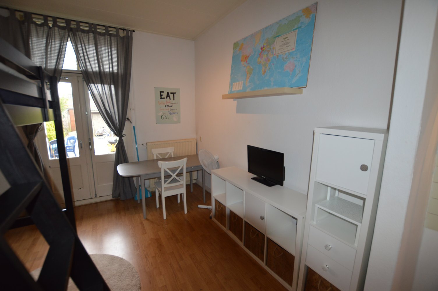 De betreffende kamer bevindt zich op de begane grond aan de achterzijde van het pand. Aangrenzend vindt u de keuken en badkamer welke gedeeld worden met 3 andere vrouwelijke medebewoners. Ook is er een ruime tuin aanwezig welke gedeeld wordt, deze bevindt zich op het zuid oosten. Via de kamer kunt u ook direct naar de tuin vanwege de openslaande deuren.
