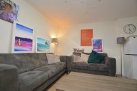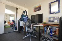 De kamer heeft voldoende plek voor een twee persoons bed, bureau en een kledingkast. Het huis wordt gedeeld met 6 medebewoners. Je deelt hiermee de grote woonkamer van 43m2, de keuken wat beschikt over een vaatwasser, oven, wasbak met kraan, gasfornuis en erg veel werkruimte om je gerechten klaar te maken. Er zijn twee gezamenlijke badkamers aanwezig. Zo beschikt het huis nog over een groot dakterras en een balkon recht tegen over je kamer.