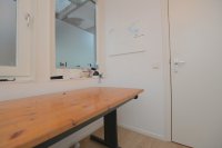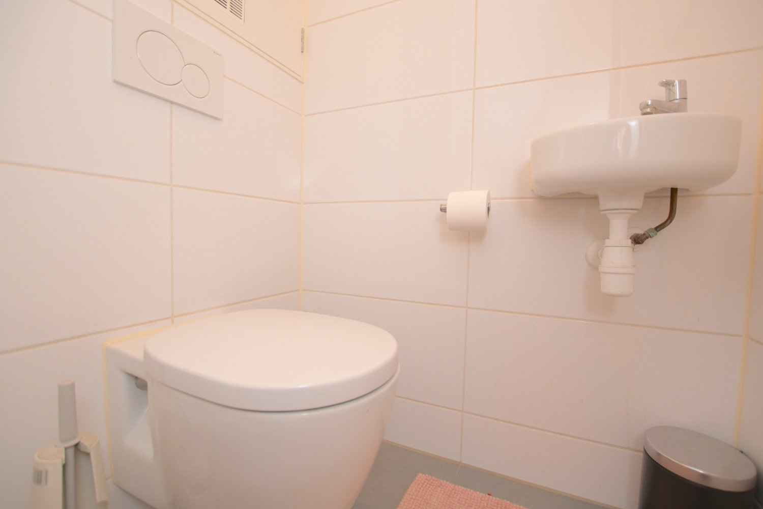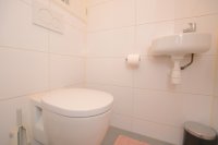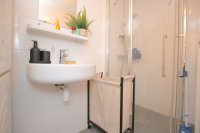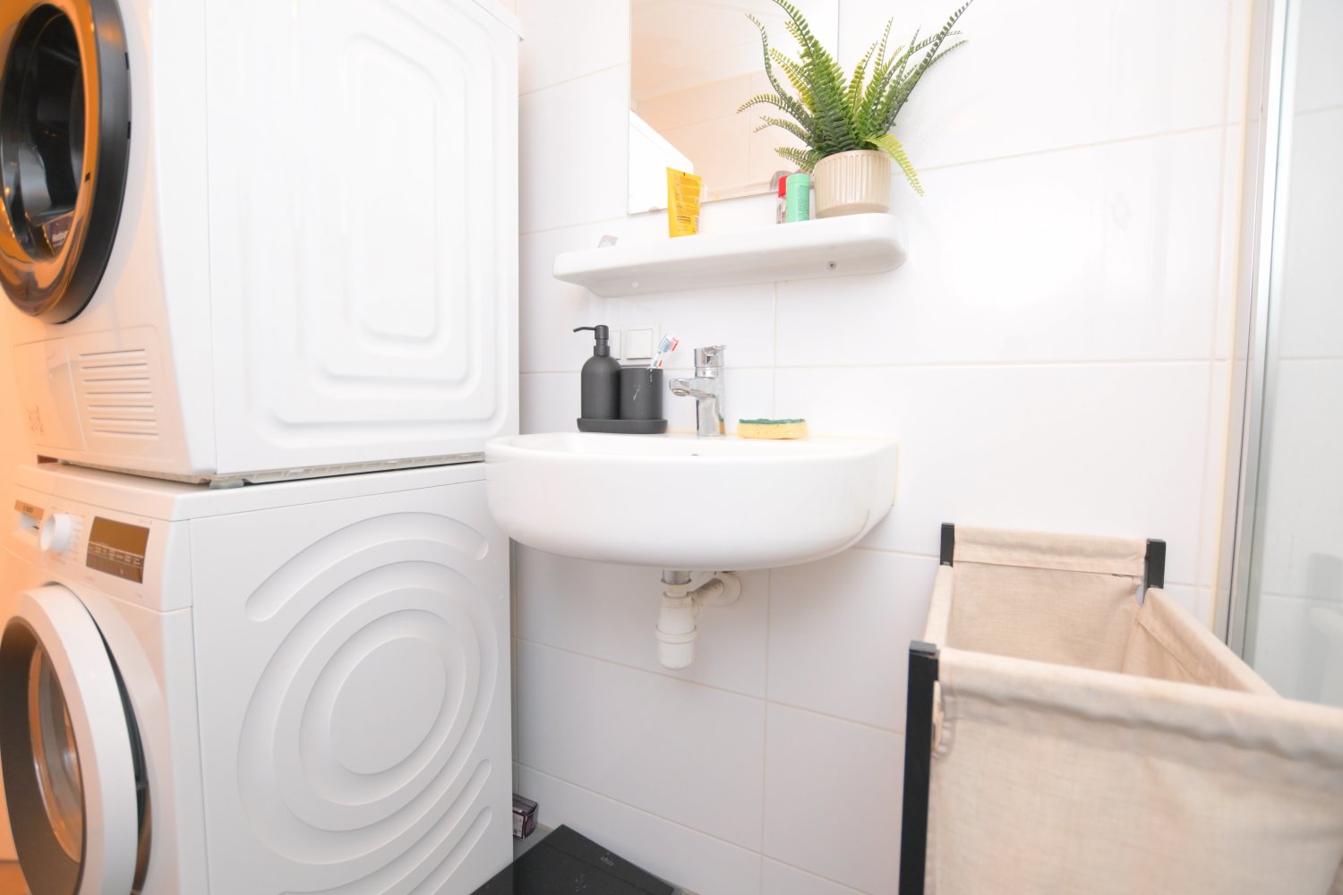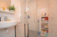 De badkamer beschikt over een inloop, wastafel en een aansluiting voor een wasmachine. Het toilet is separaat van de badkamer geplaatst.