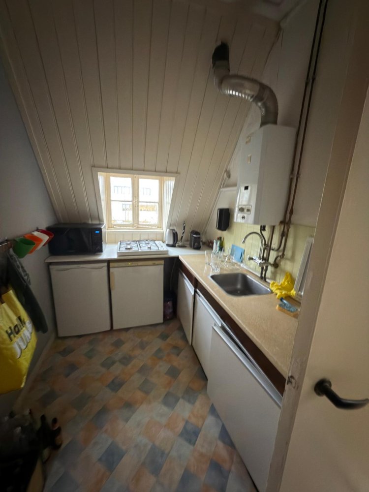Het semi appartement is gesitueerd op de eerste etage aan de achterzijde van het pand met uitzicht op de tuin. De woonruimte is voorzien van een eigen keuken met vaatwasser, inductieplaat, combimagnetron, koelkast met vriesvak. Daarnaast is er een aansluiting voor een wasmachine. Ook heb je een eigen douche die je niet hoeft te delen.