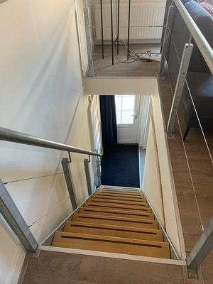 Deze ruime woning heeft ruim 65 m2 aan gebruikersoppervlakte. Bij binnenkomst in de hal treft u de deur naar het toilet en de slaapkamer. Ook vindt u er de trap naar de eerste etage. Op de eerste etage vindt u vervolgens de ruim opgezette woonkamer met open keuken aan.