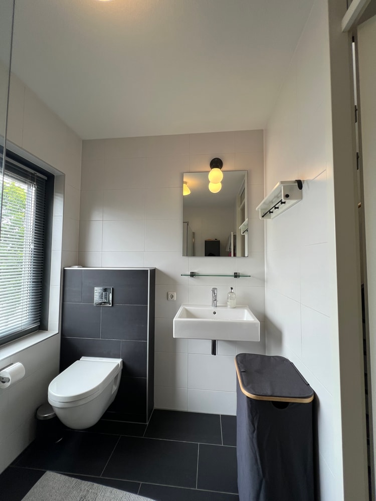 - Luxe badkamer met tweede toilet, ruime inloopdouche, radiator en wastafel