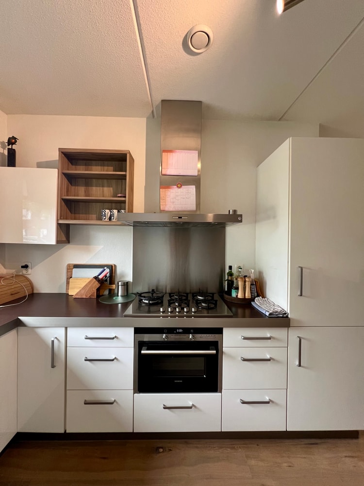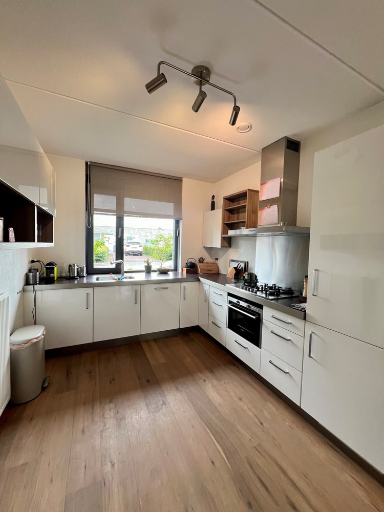 - Compleet ingerichte keuken met koel-/vriescombinatie, gaskookplaat, combimagnetron, afzuigkap en vaatwasser